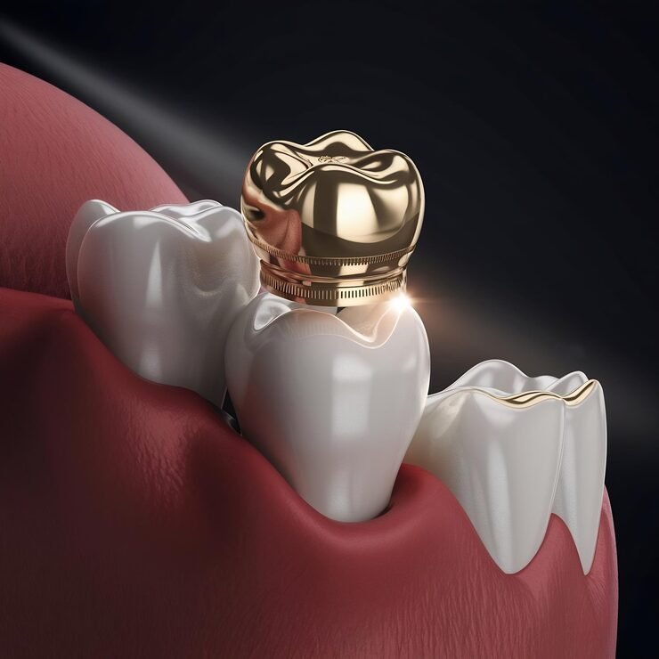 A dental crown is a custom-made cap that covers a damaged tooth. It restores strength, protects the tooth from further damage, and improves its appearance. A crown on tooth can be made from materials like porcelain, ceramic, or metal, depending on your needs and budget.